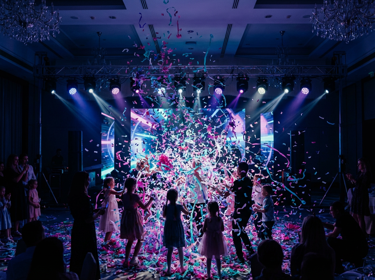 - разработка программы торжества, включая музыкальную составляющую, интересные конкурсы и специальные эффекты;