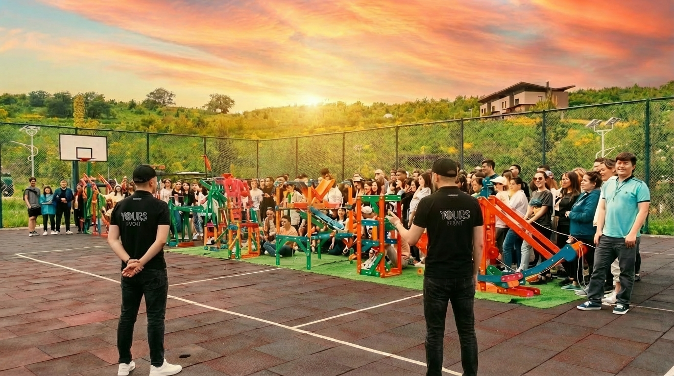 Тимбилдинг проходит в игровой форме. Участники объединены одной целью - создание цепной реакции.