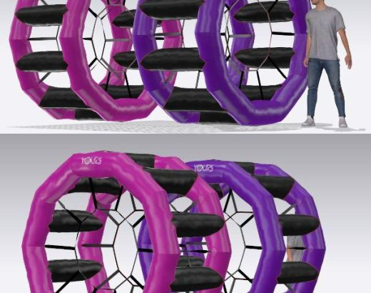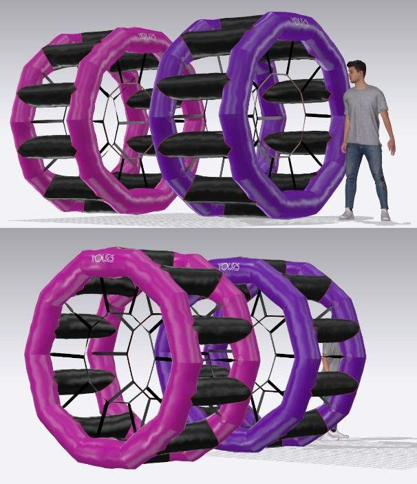 Увлекательный командный аттракцион, где участники находятся внутри огромных надувных колес. Идеально подходит для эстафет и веселых стартов.Задача — синхронно перемещаться внутри конструкции, чтобы преодолеть дистанцию быстрее соперников.