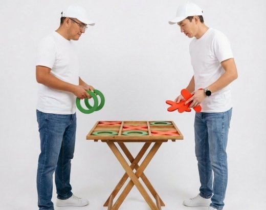 Эта игра знакома всем с детства — но в нашем исполнении она становится не просто развлечением, а интерактивной активностью для команды. На массивном деревянном игровом поле участники по очереди выкладывают крупные деревянные крестики и нолики.