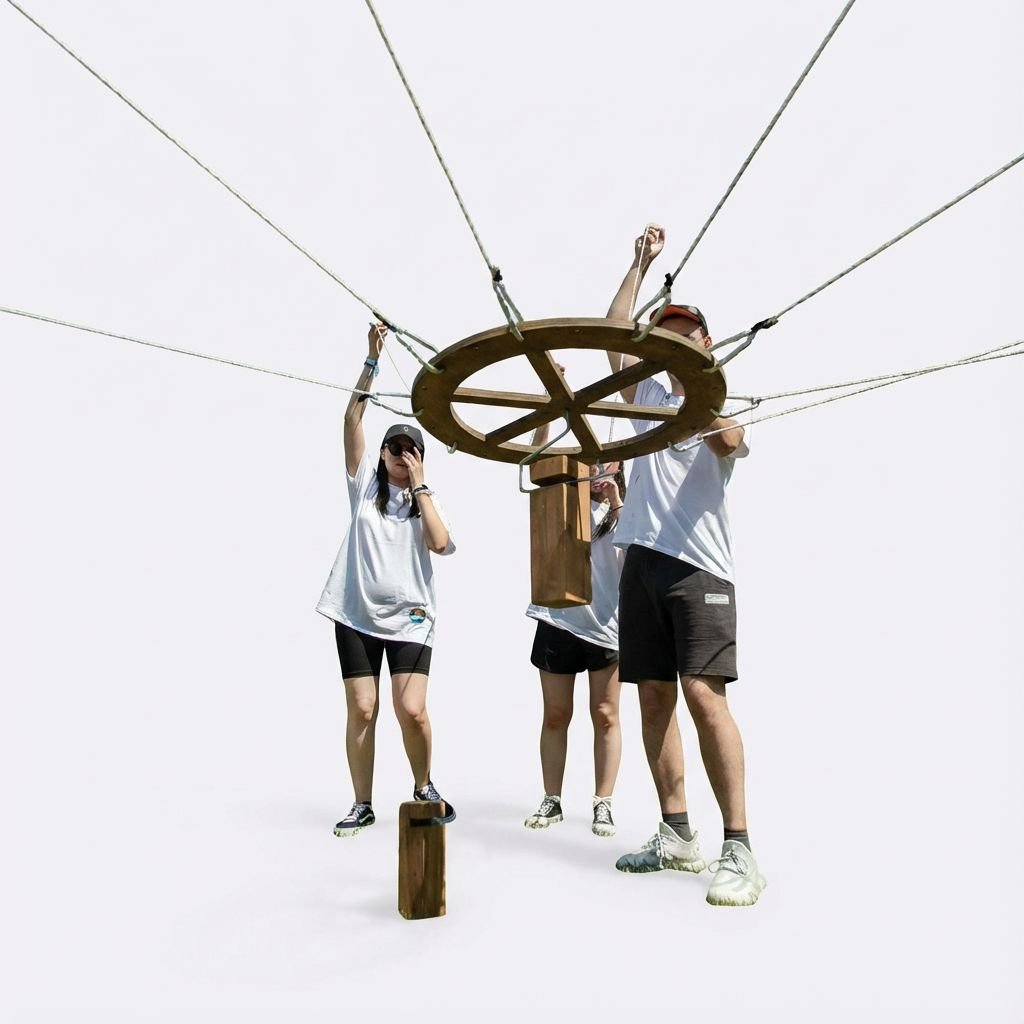 Задача участников — поднимать геометрические фигуры, одновременно держась за верёвки, и удерживатьравновеси. Таким образом они строят устойчивую башню.