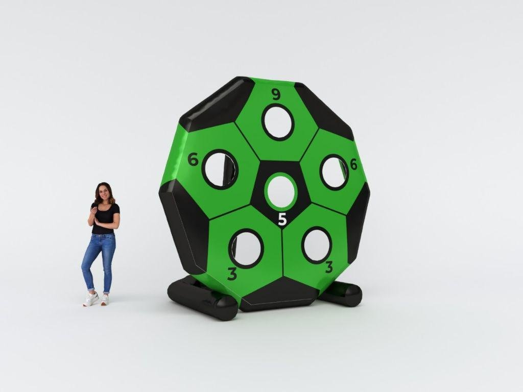 Задача игроков — попасть мячом в специальные отверстия на надувных воротах, каждое из которых приносит очки. Идеальное развлечение для фанатов футбола, проверяющее точность удара и спортивный азарт.