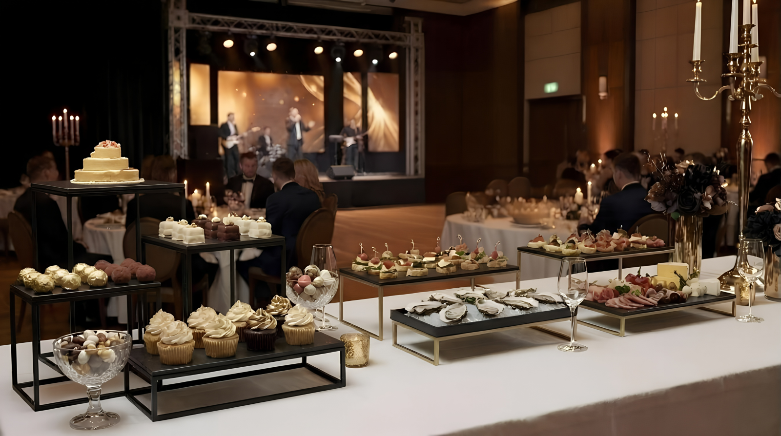 Банкет - наиболее официальный формат мероприятия. Подразумевает развлекательную программу рассчитанную на время от 4 до 7 часов и планируется в просторном зале. Классический выездной банкет – наиболее распространенная форма организации торжественного события.