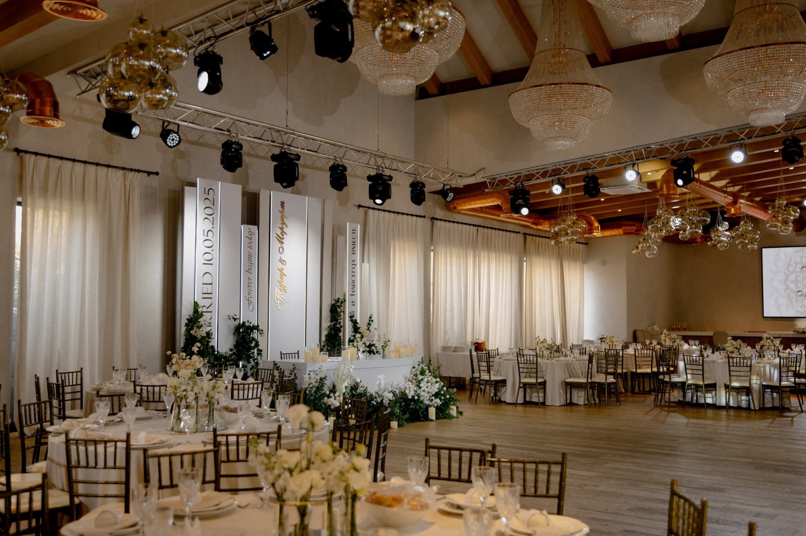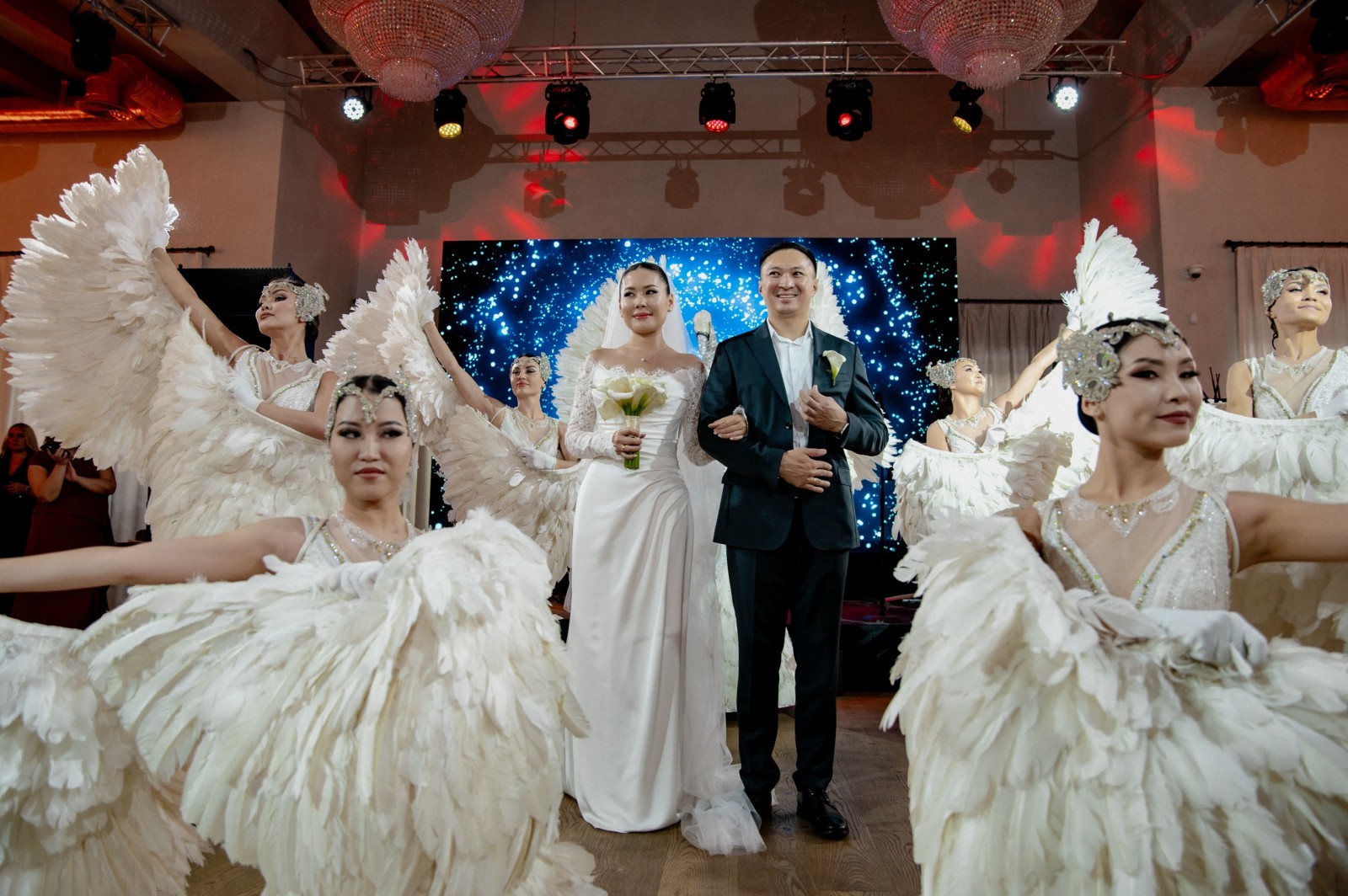 В Eleven Hall (г. Алматы) успешно проведена свадьба Турара и Меруерт на 140 гостей. Мероприятие было реализовано в элегантном европейском стиле с гармоничной интеграцией казахских традиций и национального декора. Продуманный сценарий, стилистическое оформление, шоу-программа и техническое оснащение обеспечили динамичный и торжественный ход вечера. Свадьба прошла на высоком организационном уровне, оставив тёплые впечатления у молодожёнов и гостей. |